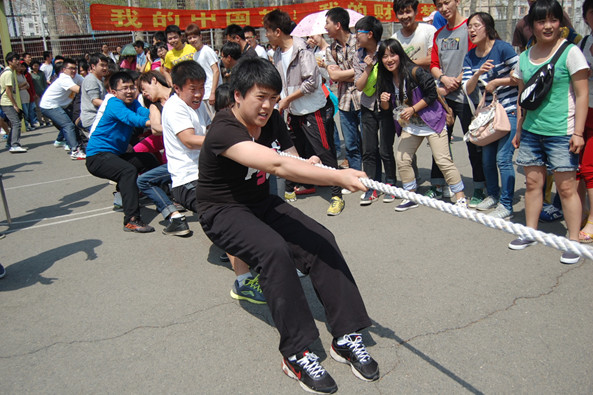 见习记者:奚帝 摄影:薄肇宇 李文静2013年10月30日下午1点30分,果冻传媒 拔河赛于篮球场如期举行。到场的观众有部分学生会成员及大三大一的同学们,团委书记韩永慧老师也到场为同学们热情地加油鼓劲。本次比赛按照淘汰赛...
