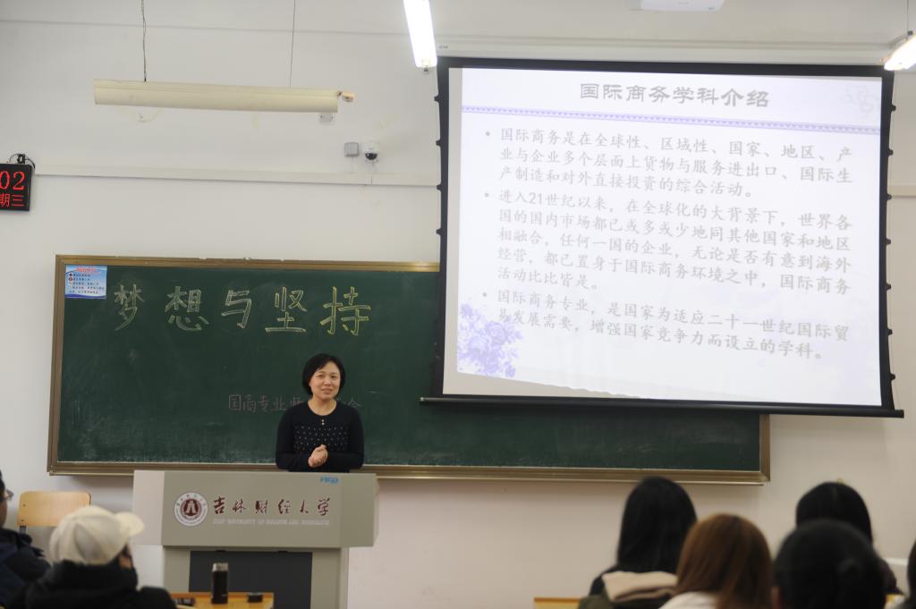 本网讯(见习记者 徐丹 摄影 徐丹 赵静茹)为了帮助国际商务专业学生更好地理解本专业的各方面情况,12月9日国际商务教研室在1230教室举行了师生见面会。本次活动由国际商务教研室主任刁巍扬主持,学院副院长关嘉麟、国际商务教研室刘蕴喆老师、张洋老师、周博闻老师、李可老师、王艳秀老师、李建民老师以及国商专业全体大一、大二、大三同学参加了活动。首先,刘蕴喆老师介绍了国商专业的课程安排,提醒大家要合理安排专业课学...