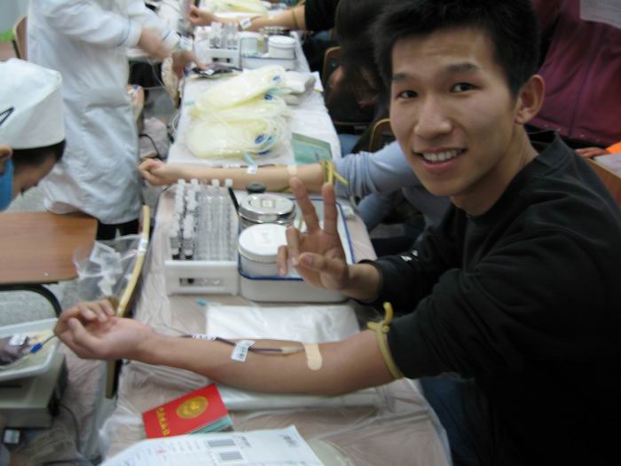 我系有近四十名同学参加了义务献血。在现场,献血同学秩序井然,极力配合工作人员各项工作。通过填表、登记、测量血压、化验血液等一系列严格而必要工作后,身体素质合格的同学开始进行献血。在采血屋内,献血同学面带微笑,象一个个充满爱心的勇士,尽自己的一分力来帮助那些与病魔斗争的人。虽然有些同学因为某些身体原因不能参加献血,但他们的精神是值得我们学习的。采血期间院领导慰问了正在进行献血的同学,并表示鼓励与赞赏。活动结束后,我系分团委细心地为献血同学准备了补充营养的食品,同学心中一片暖意。除此以外,主办单位也对本次活动中果冻传媒 同学的积极支持表示非常感谢,并为献血同学准备了免费人身保险和小礼品作为鼓励。