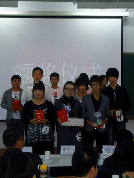 经过两个环节的激烈角逐。选手们用自己的努力,用自己动听的歌声证明了自己的实力。最后,王星同学获得最佳台风奖、李权圣获得最佳人气奖。王星获得一等奖;李权圣、吕月朗获得二等奖;冯宇、张原溥、黄琴获得三等奖;刘瑾、崔仕蛟、王彬彬、赵俊迪获得优秀奖。