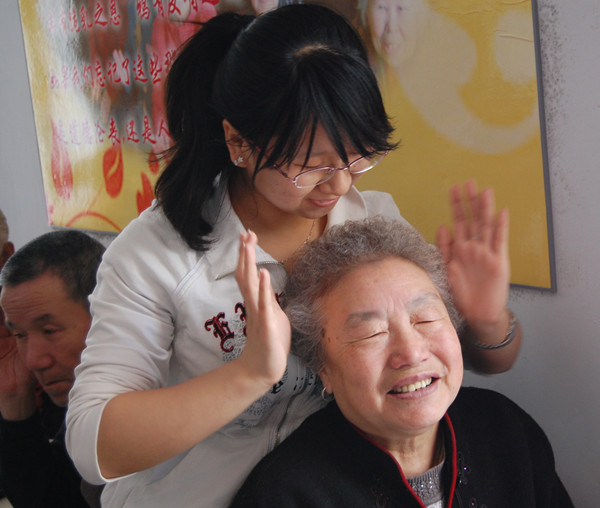 志愿者们不仅带去了大米,豆油,牛奶等生活必需品,而且还精心准备了一系列精彩的节目。让老人们获得的不只是物质满足,更多的是获得了一席丰富的精神食粮。一曲二人转接唱让老人重温了往日的青春与活力。老人们一脸幸福的微笑仿佛是在回忆着年轻时的美好往事。志愿者们还带去了一套按摩保健操,他们愉悦地为老人们按摩。每个老人满足的样子,鼓舞了所有志愿者,在他们的眼神里,我们看到了坚持的力量,也看到了大爱无声,小爱才是真的告白。有时,感动只是一个眼神,有时感动只是一句话。整个房间里洋溢着幸福的气息。