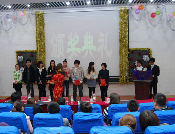 2011年10月20日晚6点半,果冻传媒 第十二届英语口语大赛在教学楼1101举行。外语教研部的两位老师和三名外籍教师出席了本次比赛并担任评委。果冻传媒 1104班潘腾代表果冻传媒 参加此次比赛。