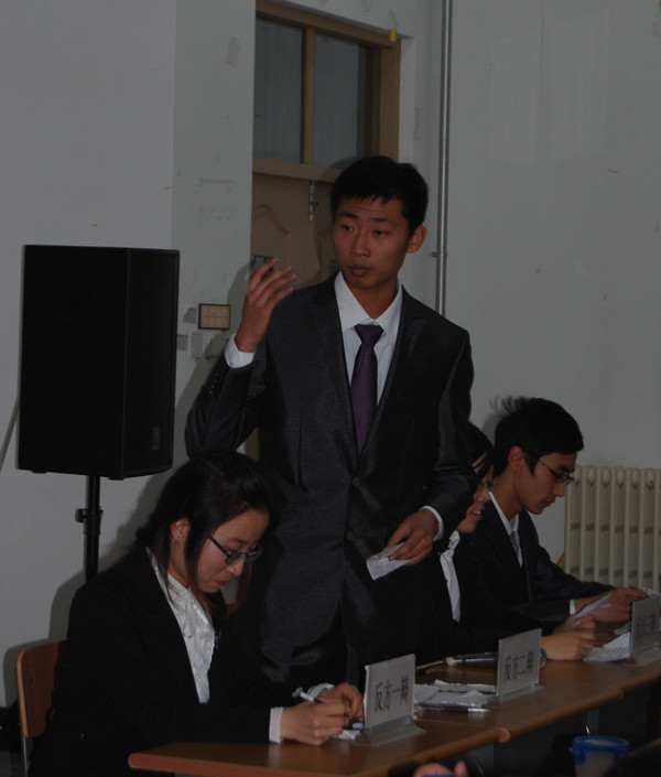 学生会社团部承办的荣誉国经辩论表演赛在1312隆重举行。本次大赛有幸邀请到原社团部部长郭天林学姐,团委副书记、09级辩论队队长、校春之声辩论赛最佳辩手刘明玉学姐,新闻部部长、09级辩论队队长、校春之声辩论赛最佳辩手孙姝瑶学姐,学习部部长、09级辩论队成员、院荣誉国经辩论赛最佳辩手王敬涵学姐到场作评委,学生会主席团也到场作嘉宾为本次大赛助威。