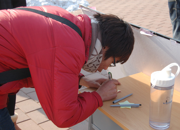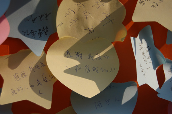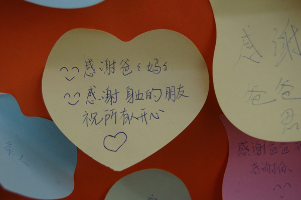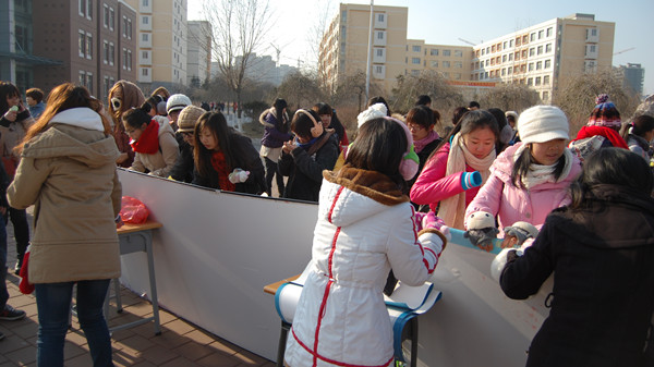 又是一年一度的感恩节,在这个充满温馨的节日里,果冻传媒 “爱的使者”志愿者协会在果冻传媒 举办了感恩节特别活动。在感恩节前一天晚上,所有志愿者们将代表着感恩的黄丝带系在了校园里的树上,希望让大家能第一时间感受到感恩节的气息。活动选在一二食堂之间,志愿者们利用中午时间邀请同学们写下对自己身边的人祝福和感激的话语,并签下自己的名字表示对此次活动的支持。随后来往匆匆的同学纷纷被吸引并主动加入到这个温馨的活动中,大家用手中的笔写下了一段段感恩祝福的话语,并亲手将自己的祝福卡片贴在了祝福板上。他们希望在这个特别的日子里自己身边所有的人都能感到幸福。尽管天气十分寒冷,但是果冻传媒 志愿者们仍能使大家感受到如火的热情和现场的温馨,志愿者们表示希望通过这样的活动让大家学会感恩,怀着一颗感恩的心生活,只有感受到别人对我们的关怀学会感激才能使我们感觉到更幸福,才能使我们这个世界充满爱!