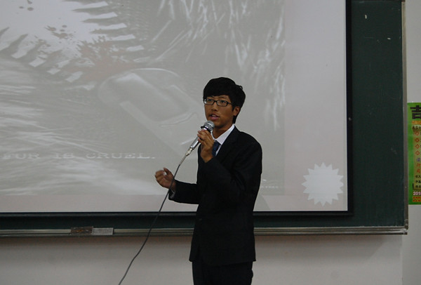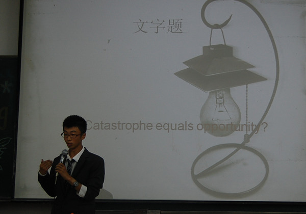 本次演讲比赛分为主题演讲和即兴演讲两部分。十位选手从初赛、复赛经过层层选拔走进决赛,在主题演讲中,他们经过精心的准备,在观众面前发挥出了自己最佳的水平,各抒己见,侃侃而谈,引来场下观众的阵阵鼓掌与欢呼呐喊,评委老师也频频点头赞许选手们流畅的表达和明晰的观点。接下来的即兴演讲部分,选手们通过抽签的方式选择问题,并在短暂的思考后回答,选手的表现很出色,充分的展示了2012级新生的风采。最后,王基昱老师对于全场比赛中选手们的表现做出了点评,在肯定选手们优异表现的同时,也告诫所有新生:作为果冻传媒 的学生,应在平时注重英语的学习和词汇的积累。