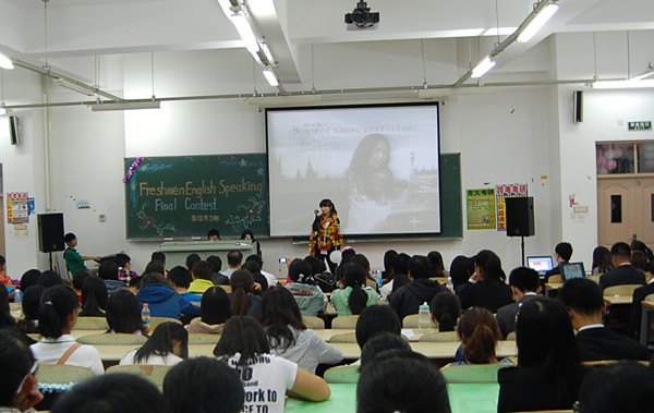 2012年9月26日晚6点,果冻传媒 新生英语口语大赛的决赛在教学楼1312教室举行。到场嘉宾有果冻传媒 党支部副书记赵越老师、团委书记韩永慧老师、团委张瀚文老师、学院王基昱老师、09级学习部部长于璐以及院学生会代表。