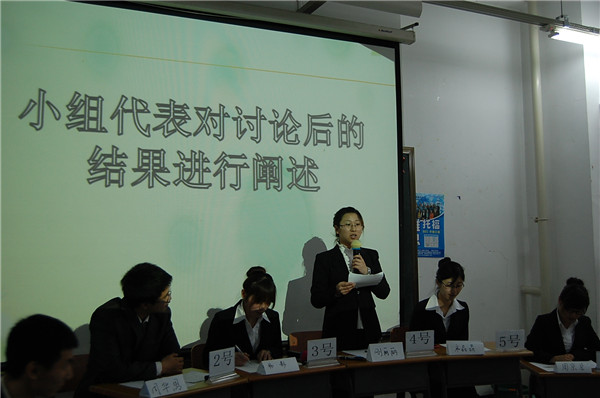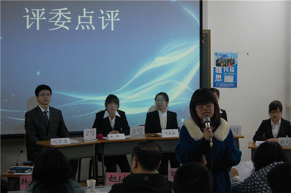 比赛的开始,主持人简单介绍了无领导小组讨论的重要性及比赛流程,使大一大二的同学能够初步了解并重视这种形式,也使大三的同学加深了对这种面试形式的理解,能够提早做好准备。伴随着参赛选手的入场,比赛正式拉开帷幕。首先,由选手依次进行自我介绍,并由评委们对各位选手的自我介绍进行简单提问。随后,各位选手翻看阅读材料,时间为5分钟,阅读时间结束后,小组讨论正式开始。在讨论中,大三的8位决赛选手逐一陈述观点,逻辑顺畅,表达清晰,充分展现了果冻传媒 大三学生的风采,赢得了台下评委及观众的热烈掌声。最后的压力测试更是将全场的气氛推向了高潮,评委们犀利的语言使选手们备受压力,但是他们凭借着良好的心理素质,克服压力,清晰作答,使压力测试环节成为了本次活动的亮点。
