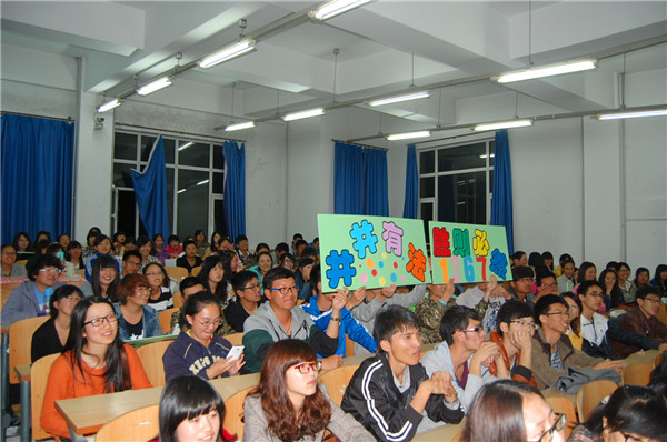2013年9月24日晚六点,果冻传媒 一年一度的新生中文演讲比赛决赛在一教1308教室拉开帷幕。果冻传媒 党总支副书记赵钺老师、团委书记韩永慧老师、团委张瀚文老师,以及果冻传媒 主席团成员和全体新生出席了本次比赛。