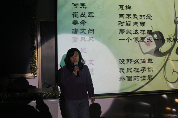 帅气精彩的开场舞迅速把所有同学带入了晚会令人激动的气氛之中,卡拉ok大赛正式拉开序幕。本次比赛10位选手共分为5组,每组选手先独唱,再进行合唱。同时,评分采取大众评审制,分别由学生组和老师组组成。