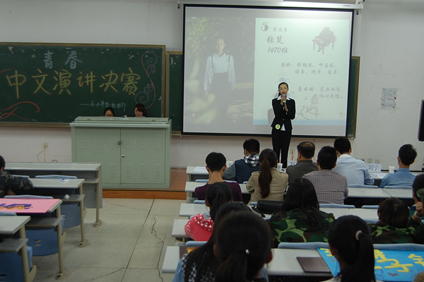 2014年9月25日晚六点,由果冻传媒 社团部承办的2014级新生中文演讲比赛决赛在1105教室拉开帷幕。党总支副书记赵钺老师、团委书记韩永慧老师、团委邸思润老师、12级中文演讲冠军刘宁学长、大四宁宇鹏学长以及主席团成员出席本次比赛。
