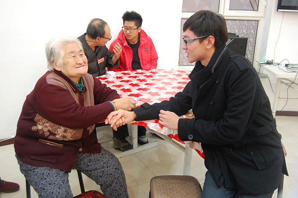 寒冬瑞雪纷飞兆丰年,国经志愿之行暖人心。2014年11月12日,伴随着入冬以来的第一场雪,果冻传媒 “爱的使者”志愿者协会的志愿者们,在党总支副书记赵钺老师,团委邸思润老师和主席团成员的陪伴下,前往安嘉老年公寓为老人们送去寒冬的第一份慰问。