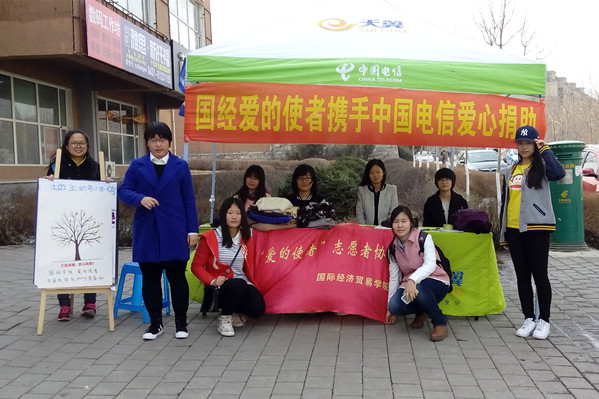 春回大地,爱暖人间。2015年3月24日至27日,国经“爱的使者”携手中国电信在学校宜学超市门口举办了为广西隆安县屏山乡贫困地区学生的爱心捐助活动。