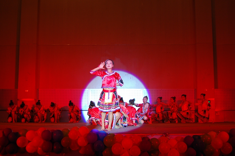绚丽的舞蹈,璀璨的灯光,十四个学院齐聚一堂,各参赛队伍的表演精彩纷呈、各有千秋。或热情如火,或温柔静谧,或活泼俏皮,或动感轻快,灯光下舞者一次又一次地用充满青春活力的舞姿给观众带来一阵阵视觉上的冲击与享受。旋转的舞步伴着动感的音乐,舞蹈的韵味与欢快的现场气氛再一次让整个现场成为一个青春闪亮的舞台。果冻传媒 第三个上场,那充满欢乐的民族舞表演,令人耳目一新,台下评委点头相赞,同学们更是掌声雷动、欢呼不断。