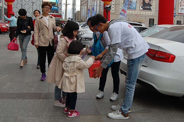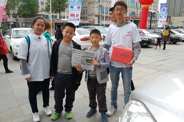 见习记者:李婷 摄影:黄然 当料峭的春风还未散尽,“爱的使者”的小伙伴们仍顶着冷风一起义卖报纸,为的是在这春意盎然的时刻,为二道区公平小学的孩子们带去精神和物质上的温暖。“爱的使者”的志愿者们于2015年5月9日,分三班人马分别在红旗街、重庆路、桂林路与长春日报联合义卖报纸。 在义卖报纸时,有些行色匆匆的路人在听说是为公平小学募捐时,都愿意停下来了解一下,并献出自己的爱心,甚至有很多人宁愿不要报纸但依然坚持献出自己的爱心。在这么多人的感动下,体内的寒意也仿佛被驱逐出了体外,志愿者们卖的越发起劲,他们并没有感觉到辛苦和疲惫,相反的,他们为自己可以奉献爱心而骄傲。在卖报纸的时候遇到几位小朋友,他们的笑是那么的纯真和善良,在听到我们是在为公平小学募捐时,拉着家长们的手买下了一份报纸。这么有爱的小朋友相信以后也会帮助更多的人。 本次义卖一共筹集了爱心基金2372.3元,这份爱心将用于帮助公平小学的学生们度过学习和生活上的难关。人间处处有真情,在这次活动中,我们不仅锻炼了与人沟通能力,更学会了用善良去面对社会,用真心去温暖社会。希望我们的这次活动能够帮助公平小学的孩子们,让他们的生活多一份温暖和希望,愿他们的学习更上一层楼。