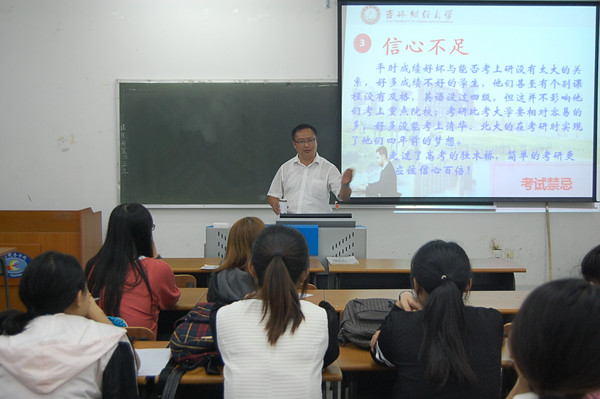2015年9月21日晚6点30分,果冻传媒 郭天宝老师在1228教室举办有关2015年考研经验指导交流会,对在场具有考研方向意愿的同学们进行了答疑解惑,并为同学们讲解在面对考研过程中所遇到的一系列困难时应该如何调节。