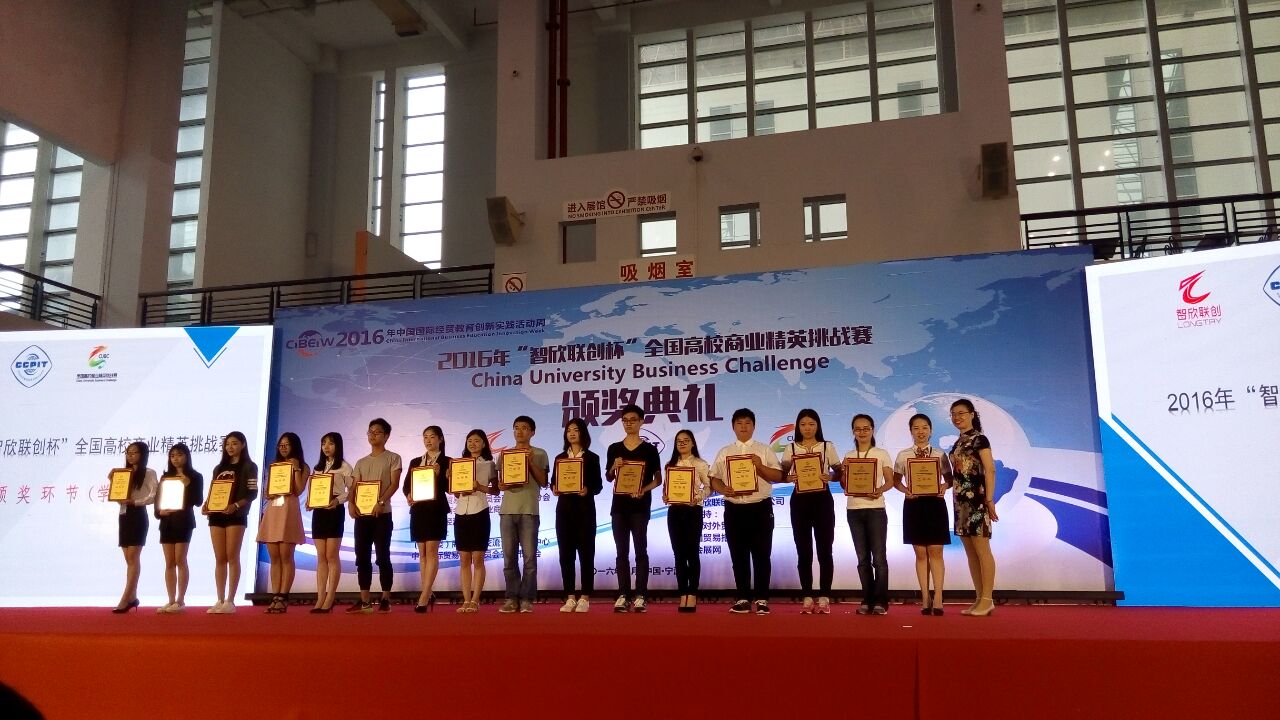 本网讯(学生记者 李文静) 由教育部高等学校经济与贸易专业教学指导委员会、中国国际贸易促进委员会商业行会分会、中国国际商会商业行业商会和中国会展经济研究会联合主办的2016年“智欣联创杯”全国高校商业精英挑战赛,于5月26日-30日在浙江宁波国际会展中心举行。参加本次比赛的共有来自全国22个省、自治区和直辖市的90所高等院校的141支参赛队的1300名参赛选手和辅导教师。果冻传媒 领导班子对此次参赛高度重视,召开专门会议研究参赛事宜。果冻传媒 代表队在果冻传媒 副院长王素玉和青年教师王珊珊博士的带领下参赛,代表队由果冻传媒 1306班李文静、1367班杨楠、1407班陈黎明、1308班吕途、1470班杨淇然、宋一鑫六名同学组成。经过大赛的商业计划书、布置展位、模拟谈判、新品发布会和展后总结报告等多个环节的奋勇拼搏,最终喜获全国二等奖的佳绩。