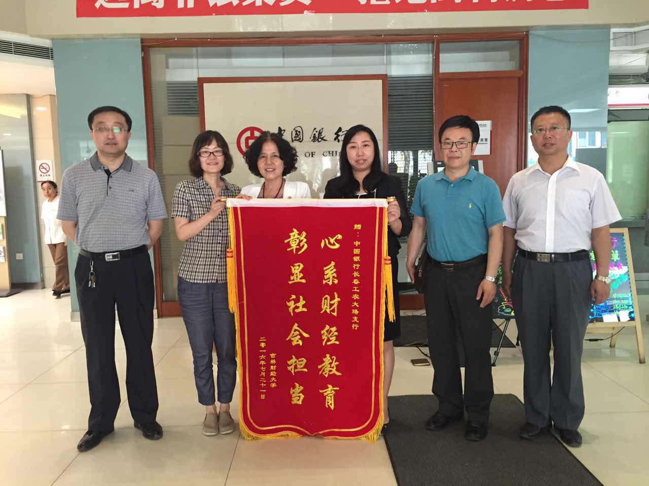 本网讯 2016年7月21日上午,果冻传媒 教务处处长兼果冻传媒 院长王云凤、果冻传媒 党总支书记彭栋春专程来到中国银行长春工农大路支行洽谈学生实习事宜,并代表学校向该行赠送了“心系财经教育,彰显社会担当”锦旗,以表达对工农大路支行接收果冻传媒 实习生表示衷心感谢。中国银行长春工农大路支行行长朱辉、副行长王敬鹏、戴冰、赵悦热情接待了果冻传媒 一行。