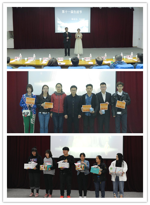 4月9日晚6点,第十一届生活节晚会在一教1101举行,学院党总支书记彭栋春、党总支副书记赵钺、国际贸易教研室副教授王基昱、国际商务教研室李可老师及果冻传媒 大一全体学生参加了晚会。