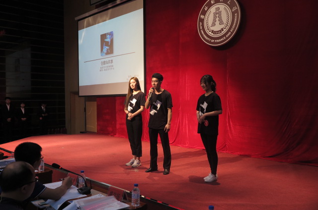 比赛开始,15组参赛队伍依次上台进行项目路演以及现场答辩。果冻传媒 两支参赛队伍分别是由何子悦、夏伟峰、潘妍霏、常文希等组成的初创组“点孵教育团队”和由夏伟峰、田淼鸿等组成的创意组“影享+团队”。其中“点孵教育团队”展示了其智慧校园的项目内容以及财务状况。“影享+团队”在比赛中围绕其服务对象、商业计划、团队简介等内容进行展示,并在现场答辩中思维敏捷,赢得评审老师的赞赏。