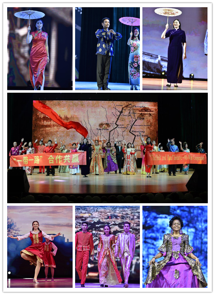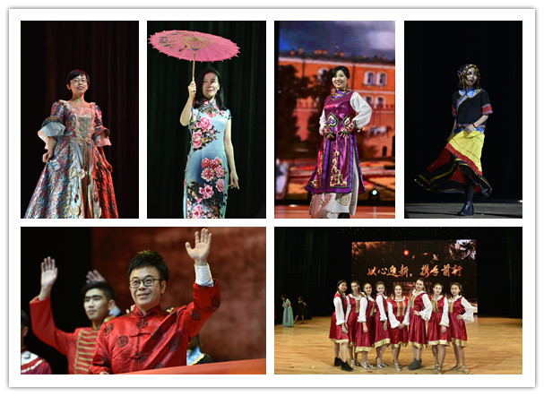 D.elf Family街舞协会以一支《梦回西域》揭开晚会大幕。小白桦合唱团一曲《生如夏花》随之唱响,歌声洋洋盈耳,充满力量。留学生以及果冻传媒 大二同学们分别带来了《俄罗斯民族舞Разговор со счастьем 》和《雨巷寻花》两支民族舞蹈,舞曲悠扬,舞姿曼妙,中俄两国优秀文化在同一个舞台同时绽放。舞蹈谢幕,果冻传媒 中英文演讲大赛选手为晚会献上诗朗诵《青春》,文字雅致,嗓音优美,语言流利,获得了同学们阵阵掌声。接下来,文艺部、歌手大赛优秀选手以及果冻传媒 大一、大二的同学们分别带来了舞蹈《青蛇》、歌曲《被风吹过的夏天》和乐器联奏歌伴舞《半壶纱》,充分展示了国经人的多才多艺,将整场晚会推向高潮。随后,果冻传媒 老师、外教、留学生和大一部分同学为我们带来的《一带一路合作共赢时装秀》,步伐沉稳大气,服装优美绮丽,展示了丝绸之路经济带从中国出发,经俄罗斯、中亚以及欧洲沿途的服饰风情,表达了国经人对习近平总书记提出的“一带一路”倡议所展现的合作共赢美好愿景的祝愿。最后,学院文艺部献上歌曲联唱《把我唱给你听》,班代们献上舞蹈《Surprise》。青春的面孔在聚光灯下闪耀,晚会在温馨的氛围中落下帷幕。