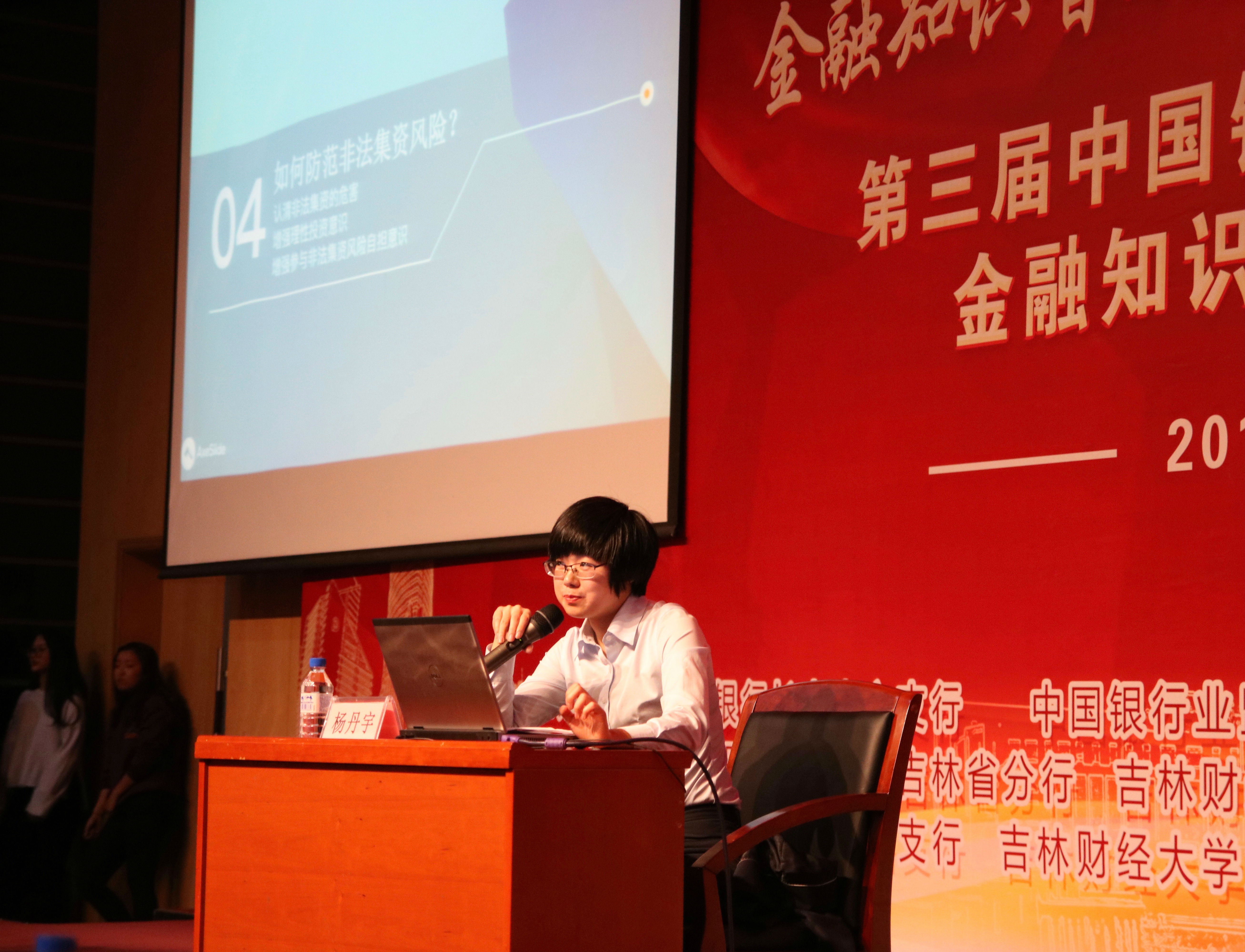 来自中国银行长春工农大路支行的杨丹宇引用大量的真实案例,分别就电信网络诈骗、非法集资、校园贷、现金贷等方面的金融知识进行了讲解。果冻传媒 和中行长春工农大路支行员工带来的普及金融风险防范知识的情景剧《校园贷》、《无边的贷价》借助大家喜闻乐见、通俗易懂的表演形式向同学们揭示了大学生身边存在的金融风险,提醒同学们务必理性消费、注意保护个人隐私,提高防范金融诈骗的安全意识。