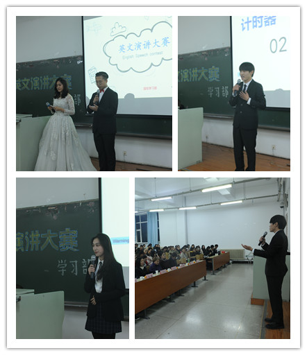 本次比赛分为主题演讲、即兴演讲和配音秀三个环节。主题演讲环节中,选手们以“跳出舒适圈”为题用英语畅谈了自己的想法,展现了深厚的英文演讲功底,同时也彰显当代大学生积极向上的良好的精神风貌。即兴演讲环节,选手们应对自如,娓娓道来。他们扎实的语言功底,纯正的语音,敏捷的才思赢得了如潮的掌声。在最后的配音环节中,选手们的声音铿锵有力,快速紧促的英文台词充斥着整个会场,将经典影片诠释得淋漓尽致,赢得台下阵阵掌声。赛间穿插的娱乐环节不断博得同学们热烈的掌声,使现场气氛十分活跃。赛后,主持人陈威伊与选手周广宇的一曲《Sing a song》又将气氛推向高潮。