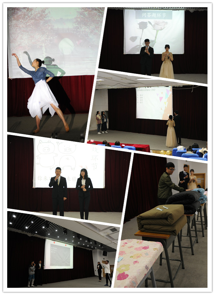 本届生活节以“百年五四 薪火相传”为主题,活动由四个环节构成。首先,学院党总支副书记赵钺为在寝室装扮活动中脱颖而出的宿舍颁发了奖品。接下来的问答环节,分为必答题、风险题两种类型,各班代表对五四运动等一些常识问题及学校建设管理中的相关问题做出了回答,这可谓是各班评比的重头戏。第三个部分为生活节的经典环节,各班表演了精心准备的节目。1811班的舞蹈串烧、1816班的俄语版《小猪佩奇》配音、1882班的相声表演《四大才子》、1813班的小剧《“贷”毁人生》、1881班的合唱《映山红》及两位同学带来的红色家书朗诵《刘少奇致子刘允若》,为生活节添上了浓墨重彩的一笔。在最后的叠被子比赛中,每班被抽中的同学要在5分钟内把被子叠为经典的“豆腐块”,由评委打分评判。