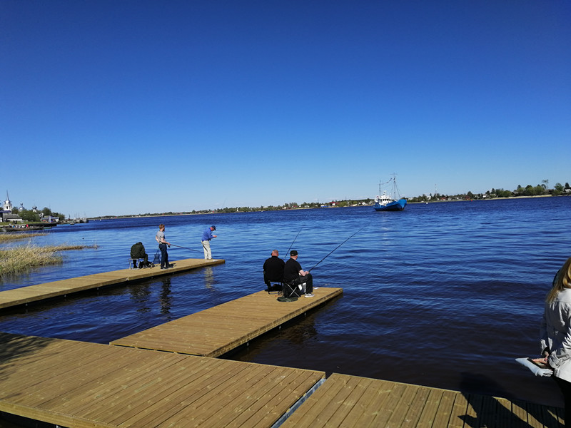 按照既定方案,我们从学校出发,于中午12点前到达乘坐大巴地点。2小时候的车程之后,我们抵达新拉多加湖城,正赶上人们在参加钓鱼比赛,闲适安逸的气息扑面而来。