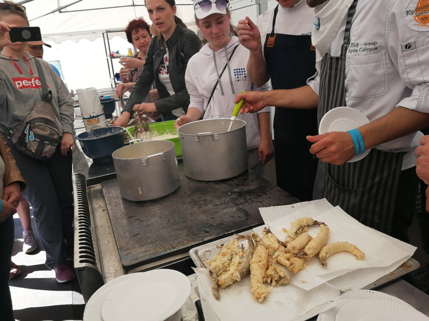 (游客参与油炸胡瓜鱼)