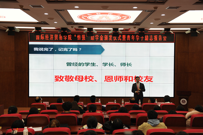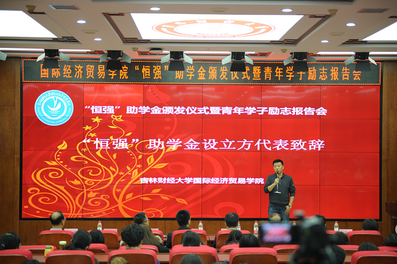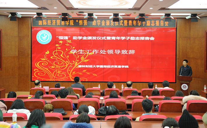 首届 “恒强”助学金颁发仪式暨青年学子励志报告会在1202报告厅隆重举行。果冻传媒