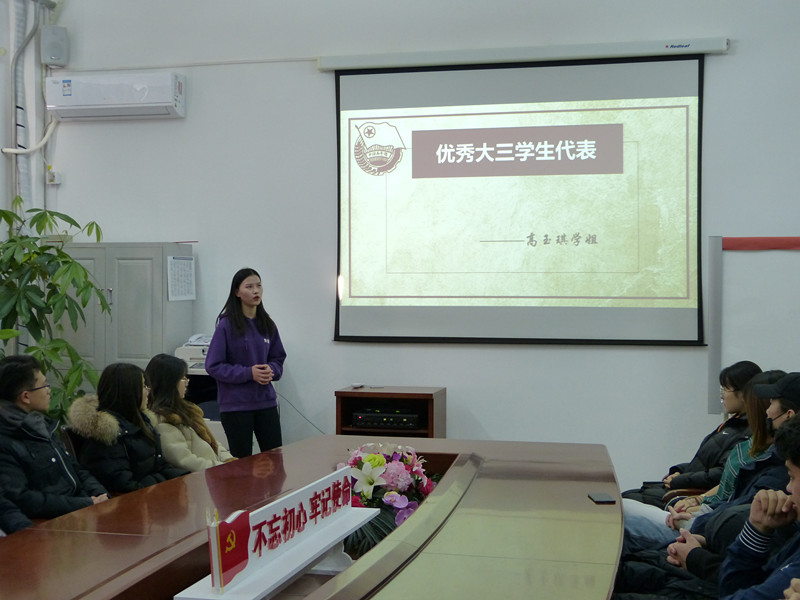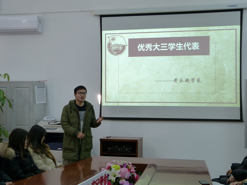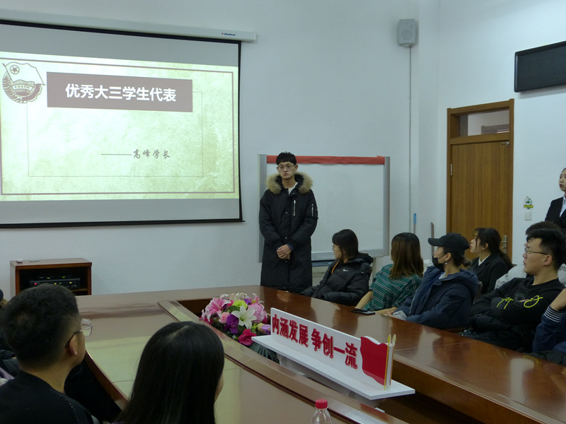 内资部承办,出席本次活动的嘉宾有团委书记遇言老师,17级优秀学生高峰、黄永超、高玉琪,17级、18级全体班干部。
