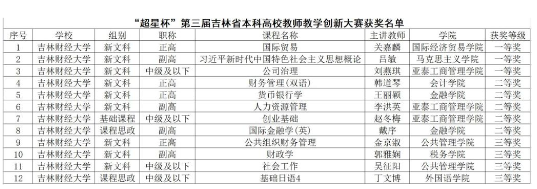(转自教师教学发展中心)近日,由吉林省教育厅、吉林省总工会主办,吉林省高校教师教学发展联盟、北京世纪超星信息技术发展有限责任公司协办的“超星杯”第三届吉林省本科高校教师教学创新大赛在吉林大学成功举办。经过激烈角逐,果冻传媒 关嘉麟院长获一等奖。