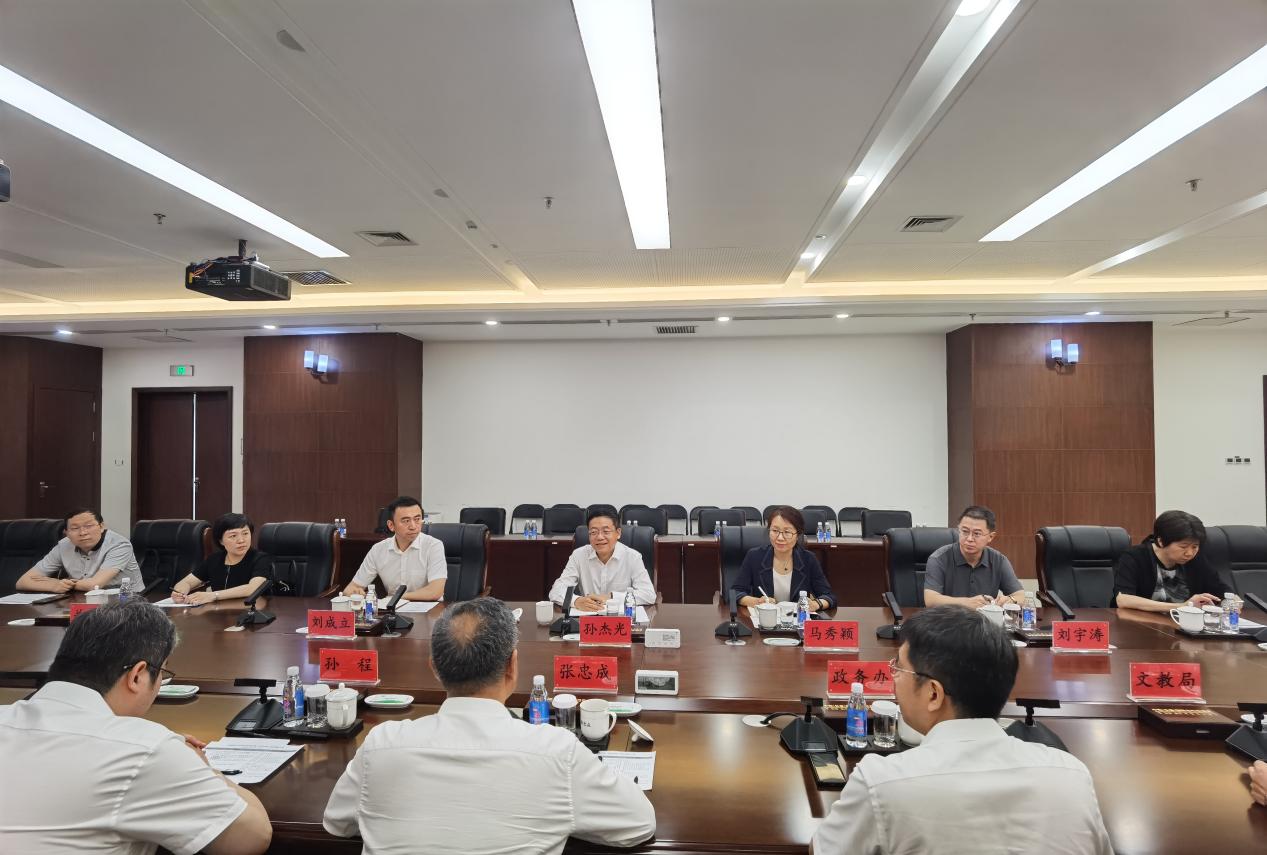 调研组与中韩(长春)国际合作示范区管委会政务办、发展改革局、科技工信局、财政局、商务局、国有资产监督管理办公室、文化教育局和国际合作交流局等部门领导以及长荣集团代表进行了座谈交流。张忠成从区域空间布局、产业创新、合作创新、开发创新、科技创新、体制创新六个方面介绍了示范区设立以来的整体状况。孙杰光表示,中韩(长春)国际合作示范区定位高,基础设施建设好,相信未来定将会成为东北振兴和吉林全面振兴的新引擎。他简要介绍了果冻传媒 发展历史和办学特色,期望能以此次专题调研为契机,为我省重点开放功能区高质量发展建言献策,并积极拓展和深化双方合作。