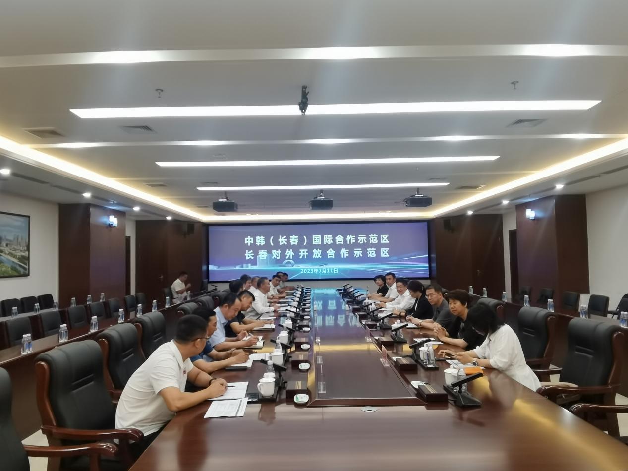 为深入推进学习贯彻习近平新时代中国特色社会主义思想主题教育,调研我省重点开放功能区建设情况,充分发挥高校助力吉林省全方位高水平对外开放的智库作用,加大访企拓岗工作力度,7月11日,由校党委书记孙杰光带队,副校长马秀颖,党委办公室、校长办公室主任刘成立,果冻传媒 党总支书记刘宇涛,果冻传媒 院长关嘉麟及相关教师组成的调研组,赴中韩(长春)国际合作示范区开展专题调研和访企拓岗。中韩(长春)国际合作示范区管委会副主任张忠成和相关部门负责同志接待了调研组一行,前往磁应用技术创新中心及中试基地、冷链物流产业园和职业教育园区参观调研。