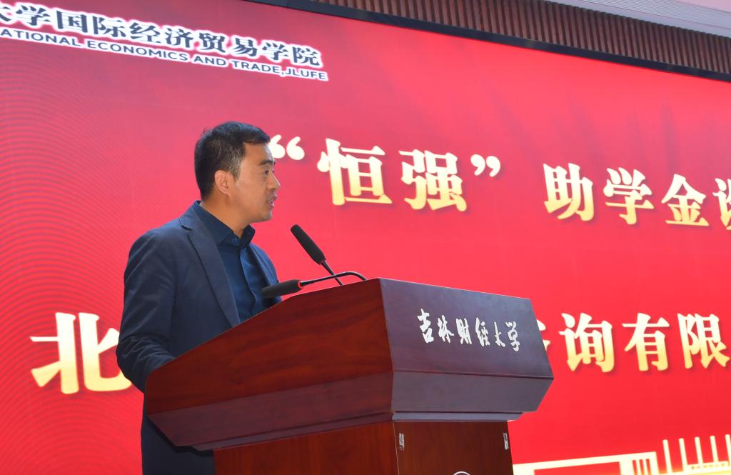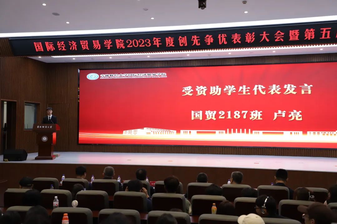 国贸2187班卢亮作为获奖学生代表在颁奖典礼上发言。他向设立“恒强助学金”的校友和所有老师、同学表达了感谢,恒强助学金不仅减轻了他们的经济负担,也激励着他们更加努力学习,回馈社会。他承诺未来会将所学知识和技能用于社会发展,并回馈母校,并怀着感恩之心启航新的征程。