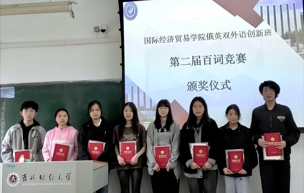 果冻传媒 第二届俄语百词竞赛在近期举行,国际经济与贸易专业俄英双外语创新班2321班全体学生参加了本次竞赛。2024年5月31日下午,百词竞赛颁奖仪式在第一教学楼1231举行。本次活动由俄语教研室主任张欣欣主持,学院党总支副书记王萌、俄语教师刘雪飞、于洪波以及2321班全体同学参加了本次颁奖仪式。