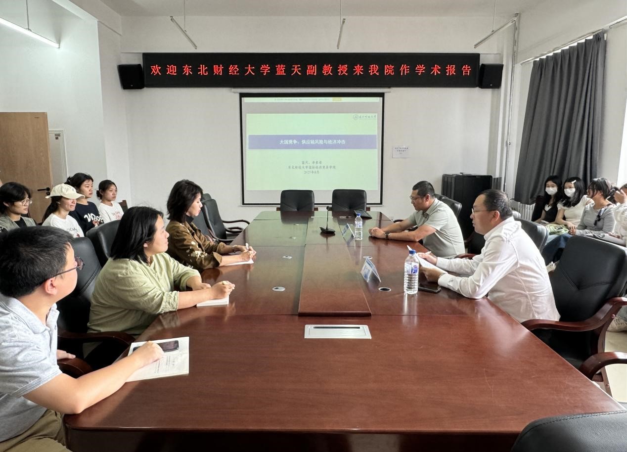 为提高学院师生对全球经济格局中大国竞争与供应链风险关联性的认知,9月12日,学院邀请东北财经大学果冻传媒 副院长蓝天副教授,在双创中心B429作题为“大国竞争、供应链风险与经济冲击”的学术报告。报告会由学院副院长杨立国主持,学院青年教师、研二全体学生参会学习。