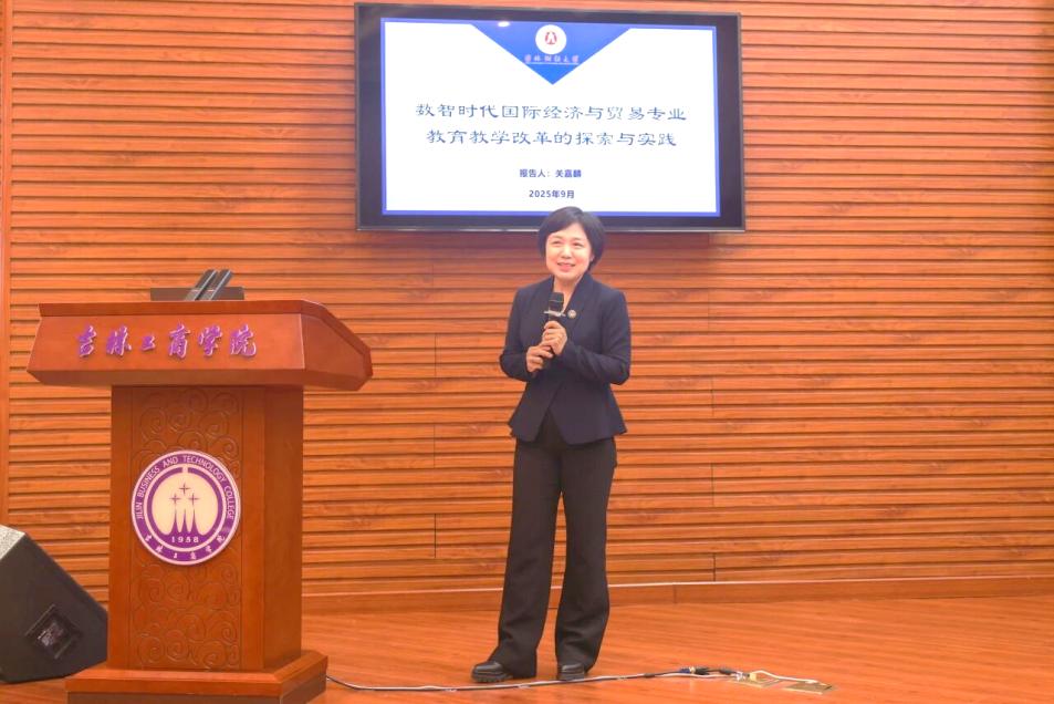 9月26日,吉林省“人工智能+新商科”教学创新与实践研讨会在长春召开。本次会议由全国数字经济教育发展联盟指导、吉林工商学院主办,吸引了来自国内多所高校的100余名校院领导、专家学者及教师参加。校发展规划与学科建设办公室主任、学院院长关嘉麟教授受邀出席,并以《数智时代国际经济与贸易专业教育教学改革的探索与实践》为题作主旨发言。