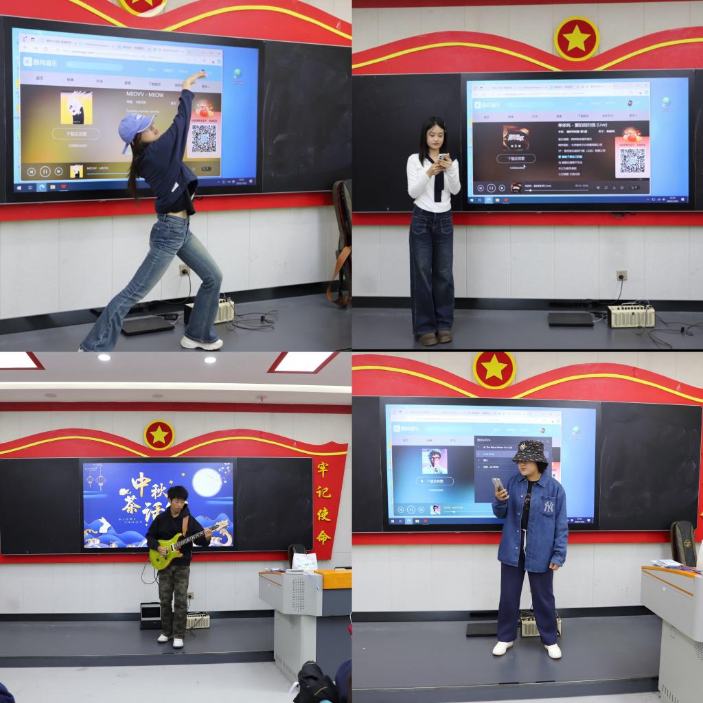 茶话会上,同学们分享月饼与零食,踊跃登台表演节目,歌曲演唱、精彩舞蹈、诗歌朗诵等精彩节目轮番上演,现场掌声与笑声不断。