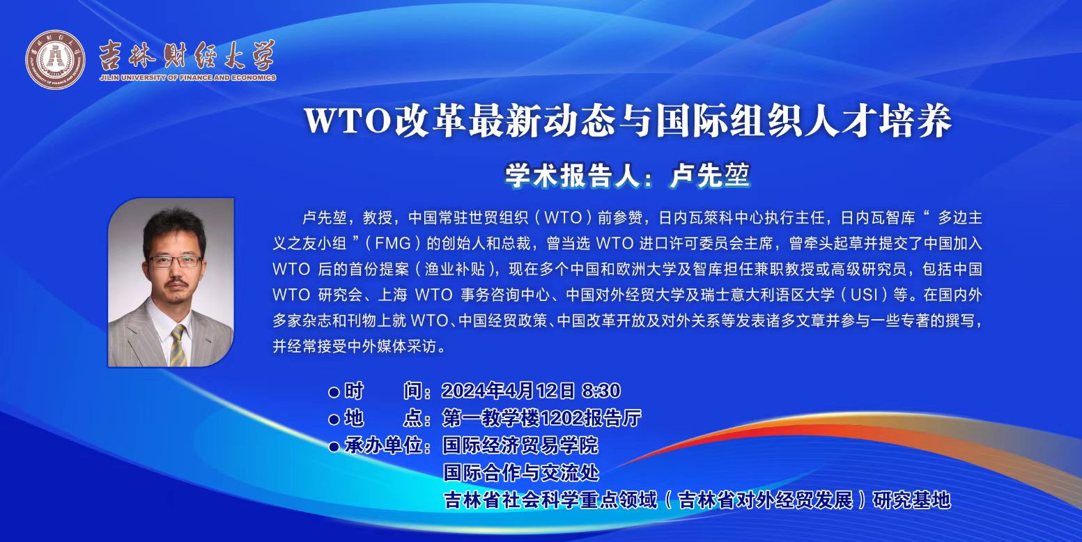 主讲人介绍:卢先堃,教授,中国常驻世贸组织(WTO)前参赞,日内瓦箂科中心执行主任,日内瓦智库“多边主义之友小组”(FMG)的创始人和总裁,曾当选WTO进口许可委员会主席,曾牵头起草并提交了中国加入 WTO后的首份提案(渔业补贴),现在多个中国和欧洲大学及智库担任兼职教授或高级研究员,包括中国WTO研究会、上海WTO事务咨询中心、中国对外经贸大学及瑞士意大利语区大学(USI)等。在国内外多家杂志和刊物上就WTO、中国经贸政策、中国改革开放及对外关系等发表诸多文章并参与一些专著的撰写,并经常接受中外媒体采访。