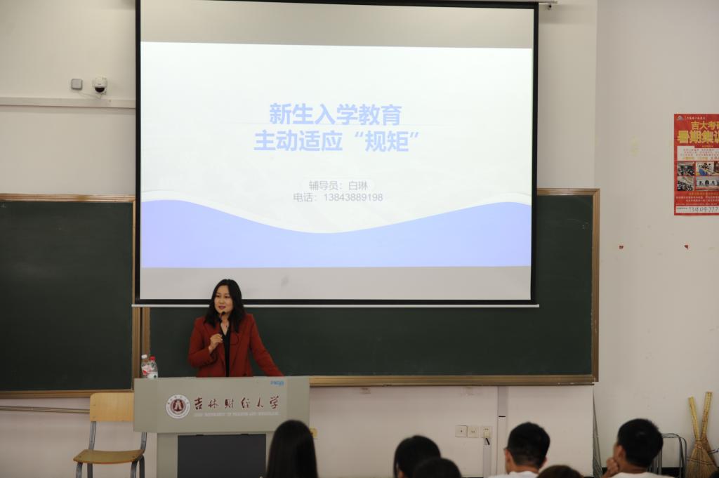 “没有规矩不成方圆”。9月6日上午,新生辅导员白琳老师以“主动适应规矩”为题对新生同学开展了适应性教育。规则是社会有序运行的“基础设施”,是社会和谐的“底座”,是社会公平正义的重要保障。白琳老师从适应规矩拓展到适应环境,鼓励新生同学要尽快熟悉周围环境、融入集体生活,建好生活圈、朋友圈,树立起正确的生活态度,养成健康文明的生活方式。