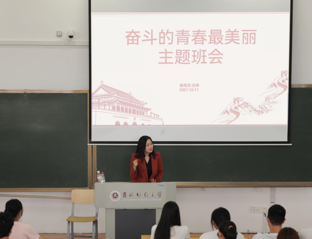 本网讯(见习记者 乙金阳 摄影 李晨莹 乙金阳)新时代是奋斗者的时代,新征程是激荡起强国梦想的征程。为带领广大青年学习贯彻习近平新时代中国特色社会主义思想,展现新时代大学生激扬的青春,果冻传媒 辅导员白琳老师于10月11日下午在1409开展了“奋斗的青春最美丽”主题班会,全体大一新生参加了此次班会。