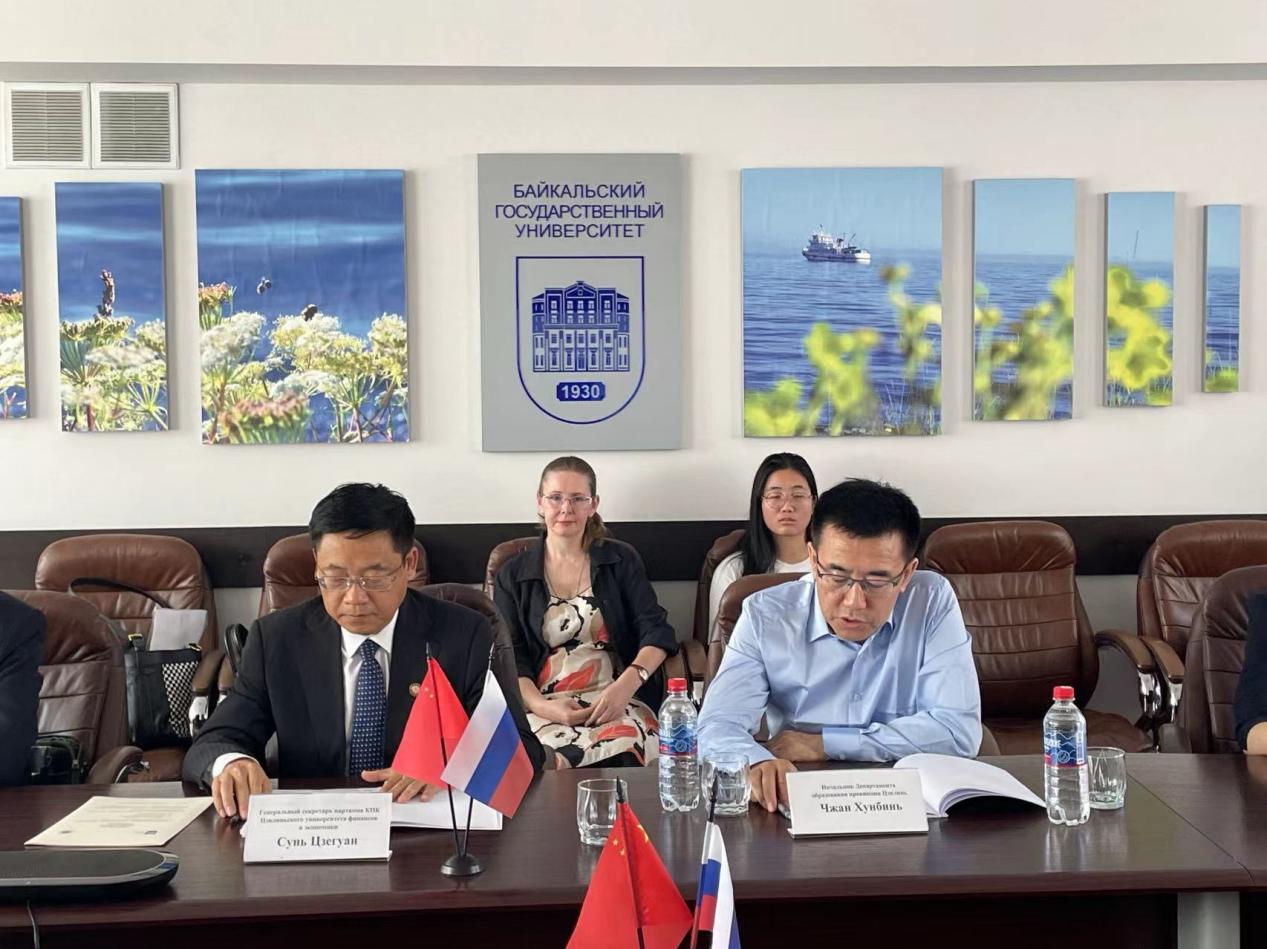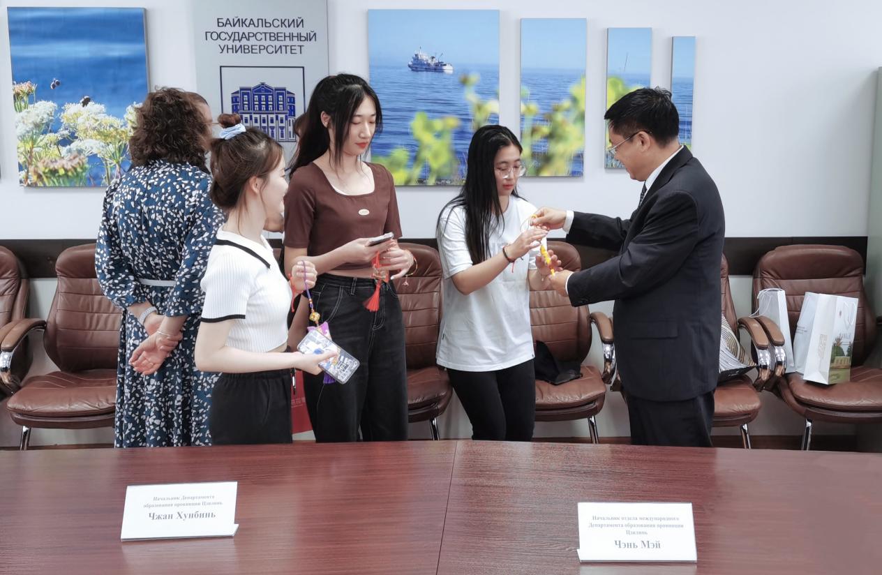 6月20日,孙杰光一行与吉林省教育厅代表团一同访问了贝加尔国立大学,果冻传媒 与贝加尔国立大学续签了两校合作协议,并开展了座谈。中国驻伊尔库茨克总领事馆教育领事赵春露参加了座谈。贝加尔国立大学校长伊格纳金科介绍了该校的基本情况,充分肯定了与果冻传媒 近十年的合作成果,并表达了与中国高校尤其是吉林省高校开展校际交流与科研合作的愿望。吉林省教育厅厅长张洪彬介绍了吉林省高校的基本情况,他表示,吉林省非常重视省属高校与俄罗斯高校开展深入的人才培养与交流合作,此次出访见证了果冻传媒 与贝加尔国立大学合作的深化。孙杰光指出,果冻传媒 与贝加尔国立大学合作培养的俄英双外语国际经贸人才深受社会好评,并对贝加尔国立大学办学治校能力和教育教学水平予以肯定。孙杰光提出未来与俄罗斯高校开展“1+N+1”的教育合作思路,希望积极探索并推动与贝加尔国立大学实施深度教育合作,尝试开展多种模式的联合人才培养项目;充分挖掘对俄教育合作潜力,助力把吉林打造成我国向北开放重要窗口和东北亚地区合作中心枢纽。双方还就共同感兴趣的冰雪旅游、特别是冰雪装备制造、旅游人才培养等方面开展进一步合作进行了深入探讨。座谈会后,出访团慰问了果冻传媒 在该校的留学生,孙杰光亲自为留学生戴上家乡的香囊和五彩绳,表达了亲切关怀与端午节祝福。