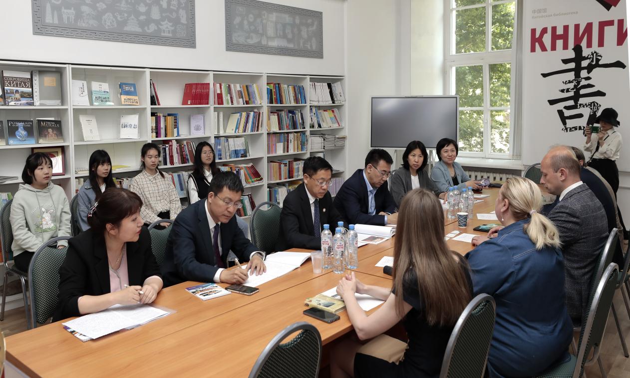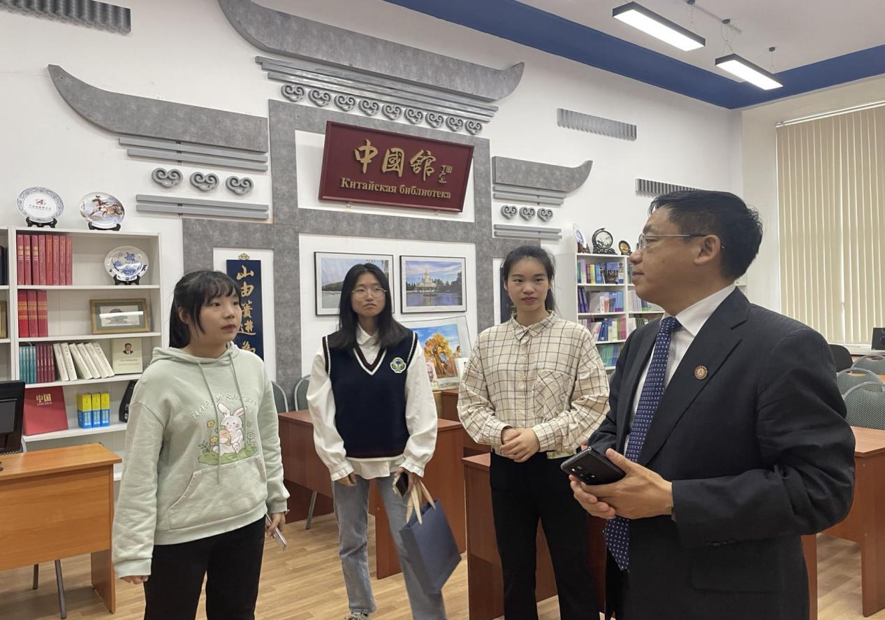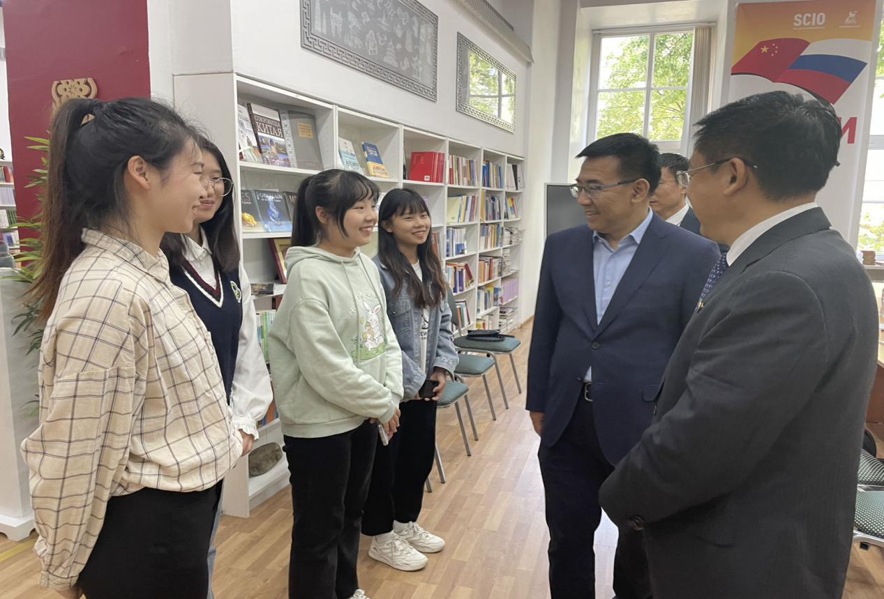 座谈会后,出访团参观了圣彼得堡国立经济大学中国馆,并亲切慰问了果冻传媒 在该校交换学习的留学生。张洪彬向他们表达了节日的问候,并鼓励他们传播中国优秀的传统文化,讲好中国故事。