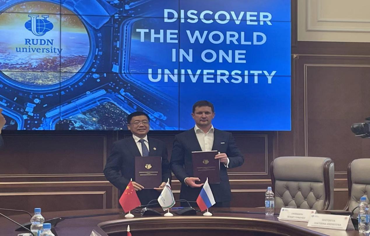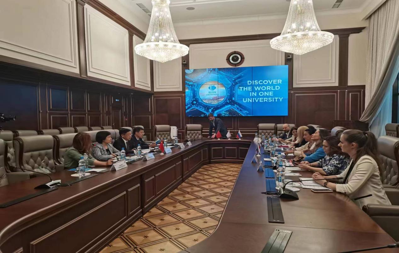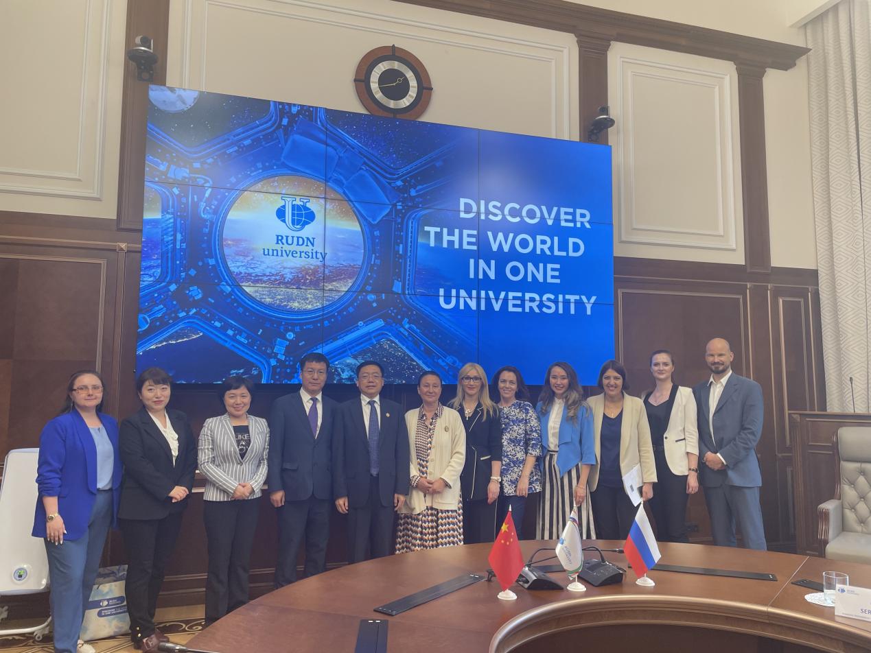 6月23日下午,孙杰光一行访问了俄罗斯人民友谊大学,双方签署了战略合作框架协议并开展座谈。俄罗斯人民友谊大学校长亚斯特列勃夫先生对代表团的到访表示热烈欢迎。双方对各自的基本情况进行了介绍,聚焦于本硕一体化高质量经贸、金融、财税、法律等专业人才培养、高水平智库建设、两校师生常态化互访、共同举办国际会议等双方共同关心的问题展开深入交流。俄罗斯人民友谊大学诚挚邀请果冻传媒 加入金砖五国大学联盟,并明确表示非常愿意于今年9月赴吉林省参加国际产学研用会议。