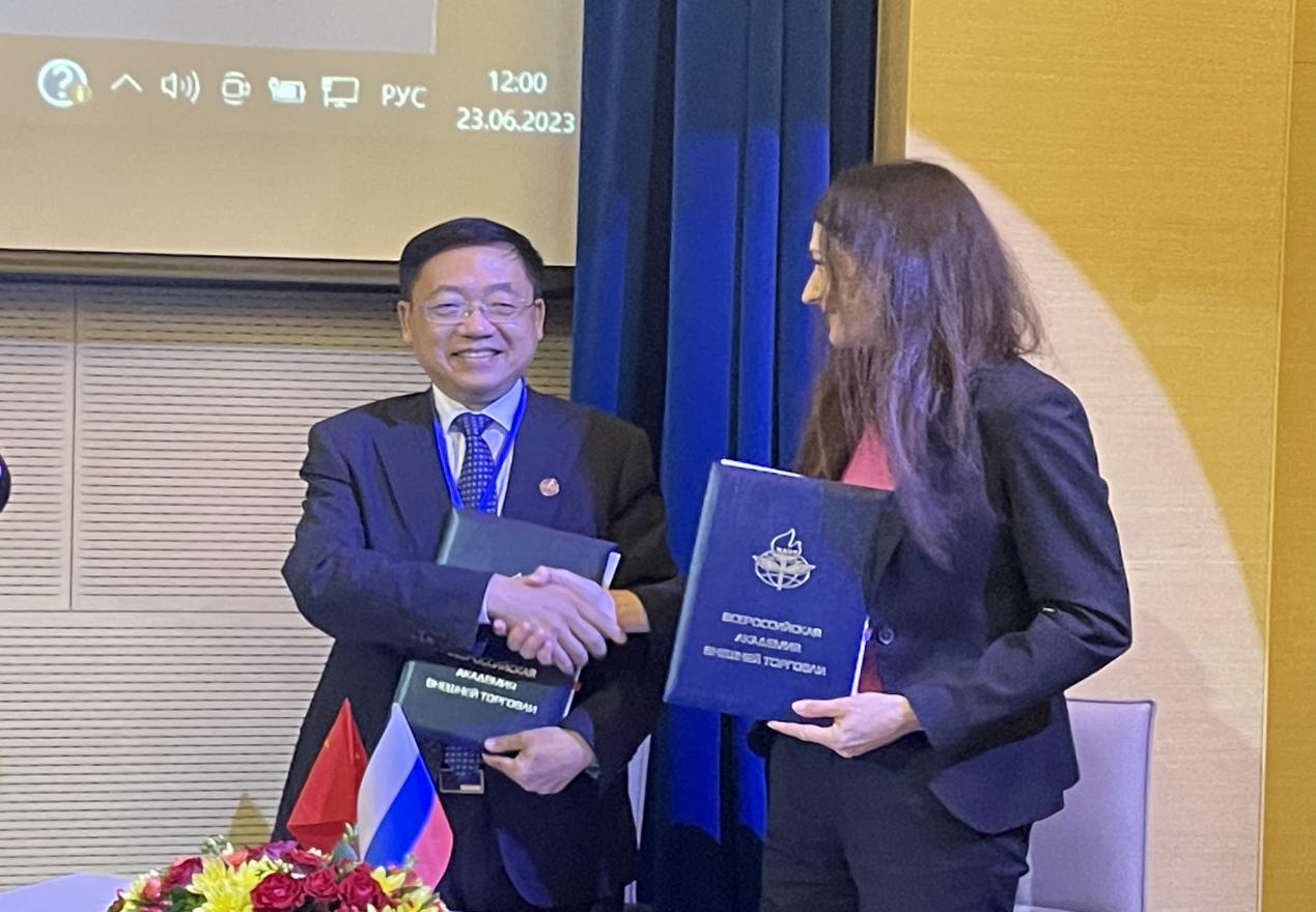 6月23日上午,出访团赴全俄对外经贸学院参加第十一届中国-俄罗斯经济类大学联盟年会。孙杰光发表了“推动联盟高校友好交流互利合作,促进中俄教育务实发展提质增效”的主题演讲。他指出,作为“中国-俄罗斯经济类大学联盟”创始高校之一,学校从上世纪90年代开始就与俄罗斯高校开展交流与合作,与俄罗斯圣彼得堡国立经济大学、贝加尔国立大学和远东商学院等高校建立了合作关系,在人才培养、学术交流、人文交流和来华留学与汉语推广等领域开展了多项务实合作。着眼未来,果冻传媒 愿与联盟高校一道继往开来,努力为扩大两国线下人文交流合作作出更多吉财贡献。年会期间,果冻传媒 与全俄对外经贸学院签署战略合作框架协议。