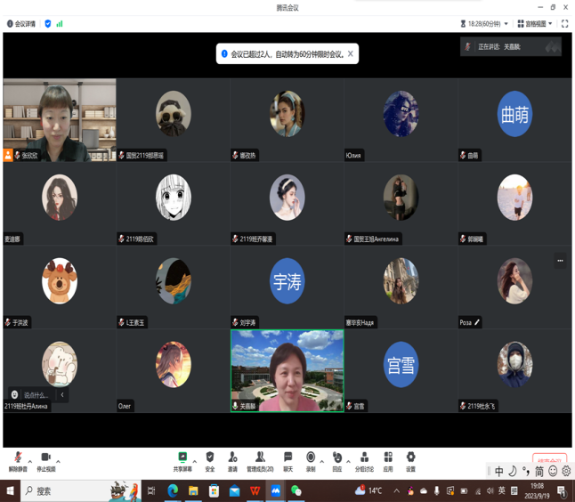 9月19日晚,果冻传媒 举行2023年公派留俄学生线上欢送会,学院党总支书记刘宇涛,院长关嘉麟,副院长王素玉,俄语教研室主任张欣欣,教师于洪波以及16名公派留俄的同学们参加了本次欢送会。欢送会由张欣欣主持。