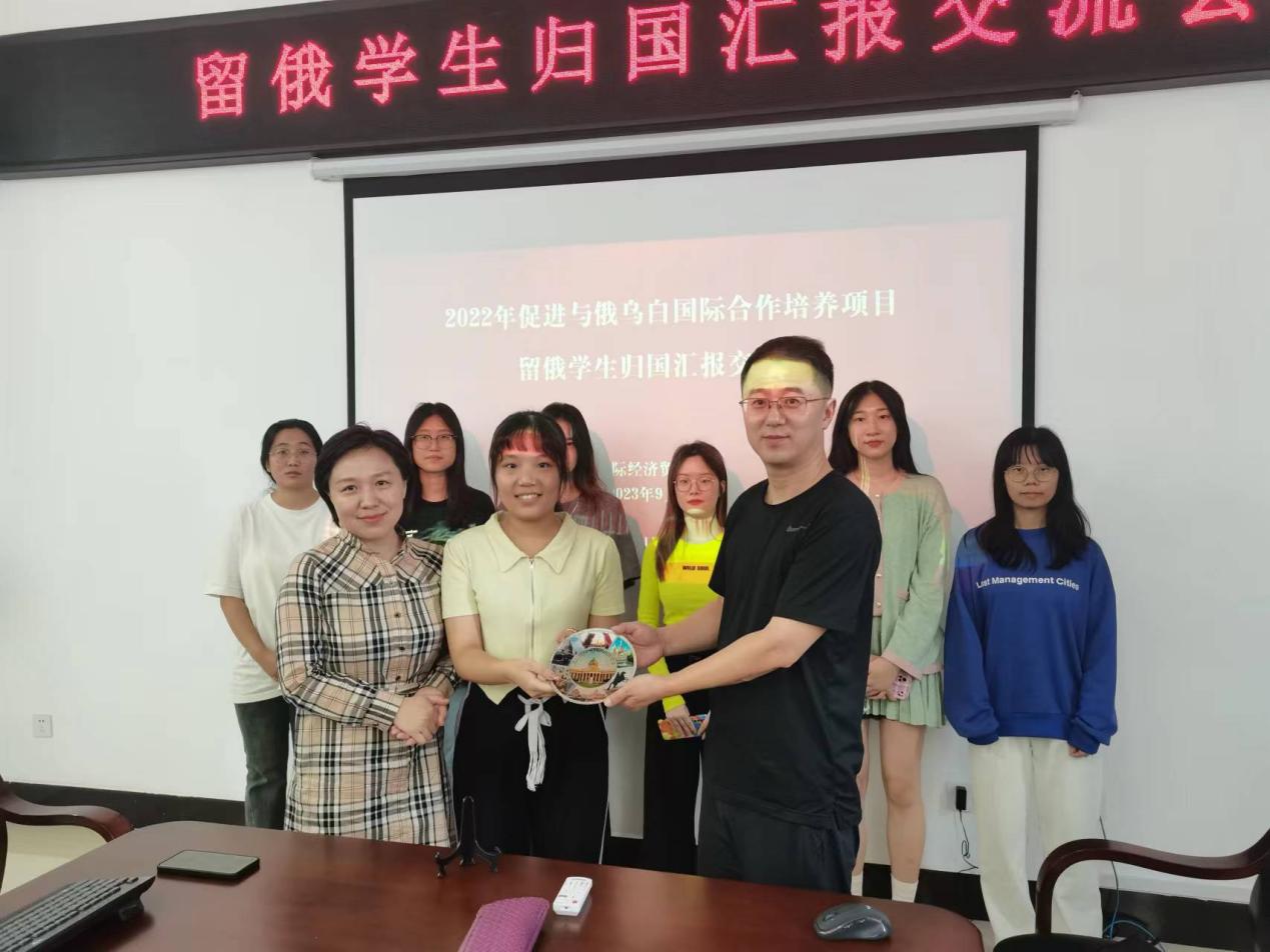 同学们首先表达了对于学校和学院培养的感激之情,每个人都详细地向老师们介绍了在俄罗斯的学习和生活情况,对于自己未来的学业规划与学院领导和老师进行了讨论。为了表达对学院的感谢,同学们向学院赠送了小礼品。