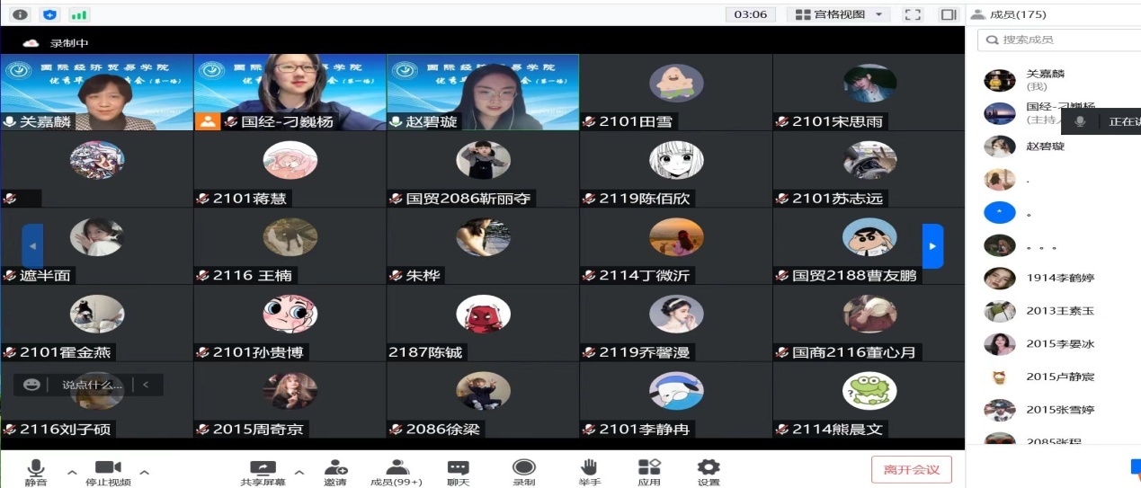 2022年9月29日晚7点,“吉言财商”国际商务谈判社2022届管理层换届大会以线上方式举行。社团指导教师刘蕴喆、石林及宋尚谕莅临会议,21届社团创始人及全体社团成员也参加了本次大会。此次大会旨在传承、发扬社团精神,促进社团高质量发展,由前任社长李思佳同学主持,会场气氛活跃。大会流程包括管理层介绍、指导教师致辞、工作计划和活动说明。大会伊始,首任社长李思佳宣布新一届管理层名单,具体如下:社长:杨小虎副社长:...